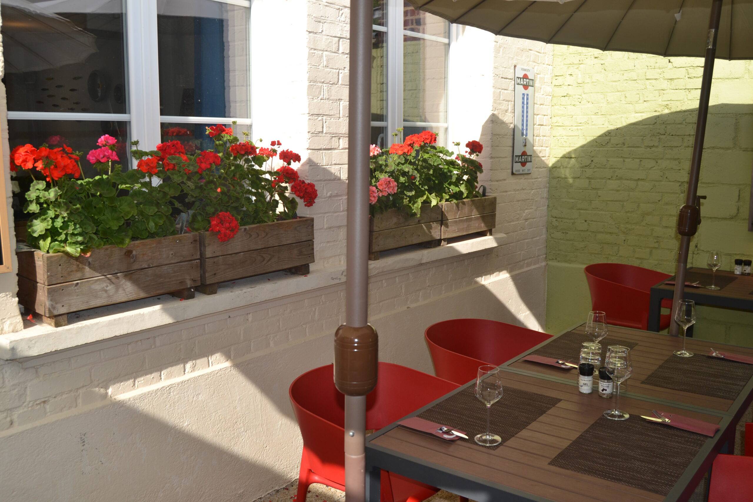 Aan de achterzijde van het restaurant bevindt zich een ruim, besloten terras. In de zomermaanden is dit een aangename plek voor een aperitief, een lunch in de buitenlucht of een lange zomeravond met diner in alle rust.